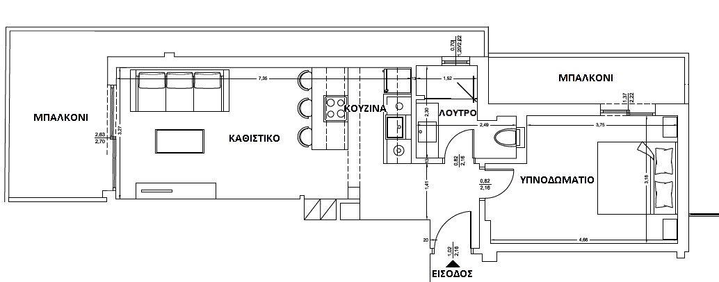 Αποτελείται από σαλοκουζίνα, υπνοδωμάτιο, μπάνιο και μπαλκόνι 25 τμ. Θα είναι πλήρως επιπλωμένο και εξοπλισμένο, με αυτόνομη θέρμανση φυσικού αερίου και κλιματιστικά σε κάθε χώρο. Τα παράθυρα θα έχουν ενεργειακά διπλά τζάμια.