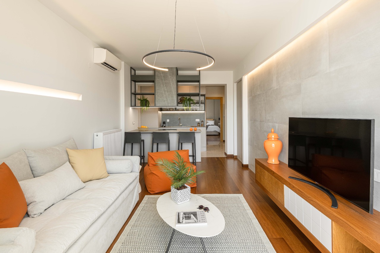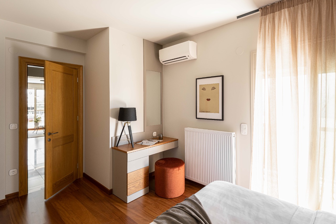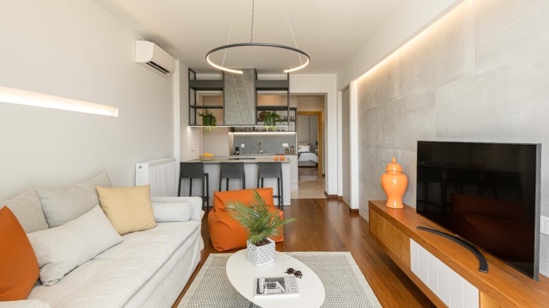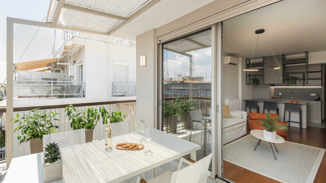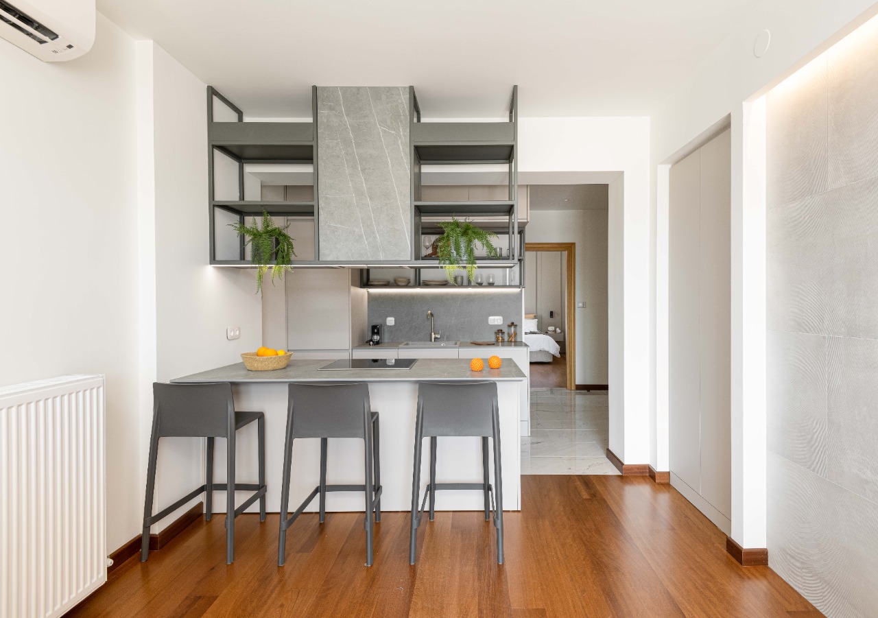 Το 68 τ.μ. διαμέρισμα βρίσκεται στον 7ο όροφο μιας πολυκατοικίας, στο κέντρο της Θεσσαλονίκης σε εξαιρετικό και κομβικό σημείο. Το 2022, ανακαινίζεται πλήρως μαζί με τα άλλα τρία διαμερίσματα του ίδιου ορόφου. Ανακατασκευάζονται στο σύνολό τους και οι κοινόχρηστοι χώροι του ορόφου, εγκατασταίνονται επίσης καινούριοι κεντρικοί σωλήνες ύδρευσης και αποχέτευσης και πραγματοποιήθηκε σωστή ηλεκτρολογική εγκατάσταση.
