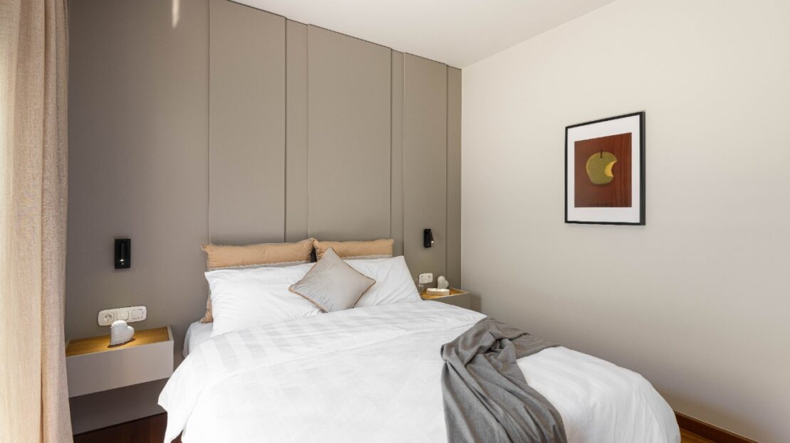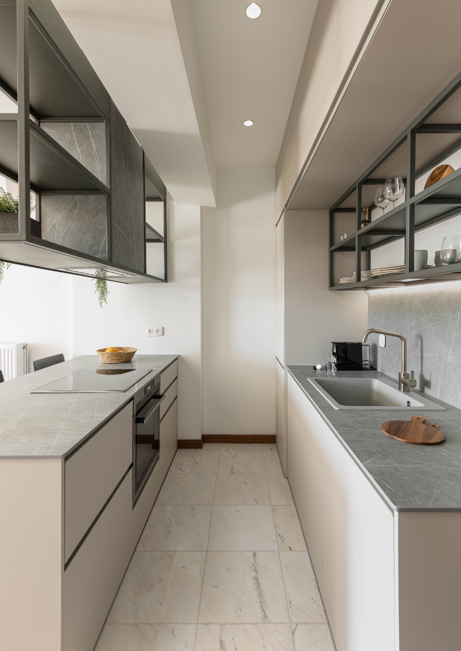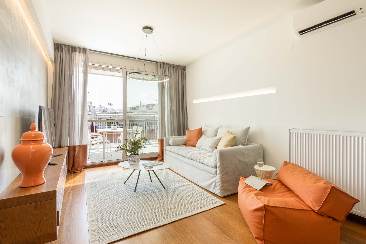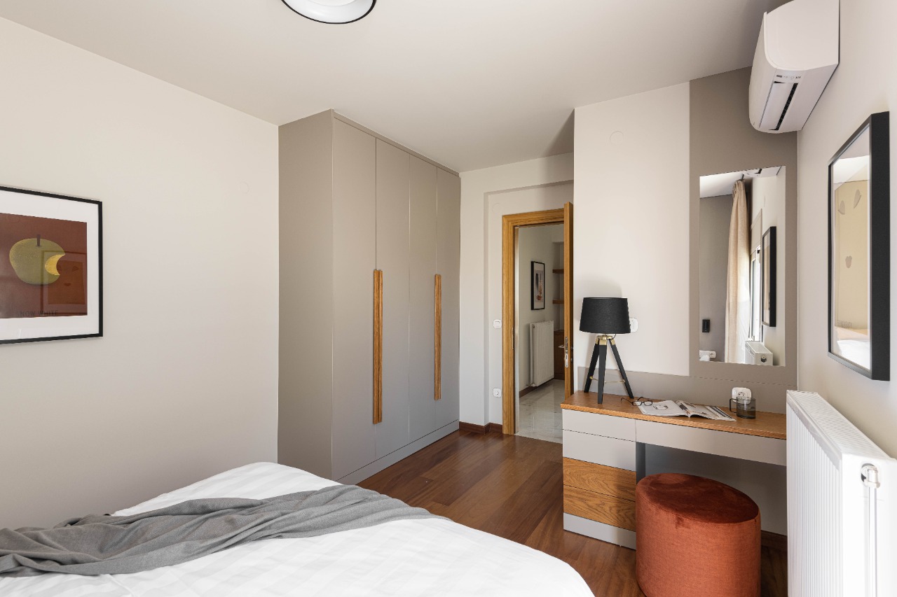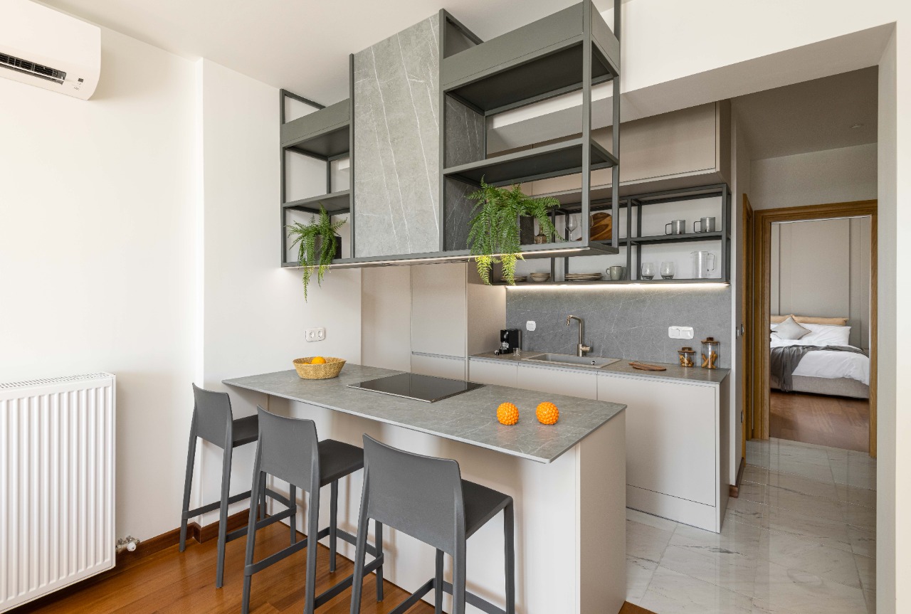Το 68 τ.μ. διαμέρισμα βρίσκεται στον 7ο όροφο μιας πολυκατοικίας, στο κέντρο της Θεσσαλονίκης σε εξαιρετικό και κομβικό σημείο. Το 2022, ανακαινίζεται πλήρως μαζί με τα άλλα τρία διαμερίσματα του ίδιου ορόφου. Ανακατασκευάζονται στο σύνολό τους και οι κοινόχρηστοι χώροι του ορόφου, εγκατασταίνονται επίσης καινούριοι κεντρικοί σωλήνες ύδρευσης και αποχέτευσης και πραγματοποιήθηκε σωστή ηλεκτρολογική εγκατάσταση.