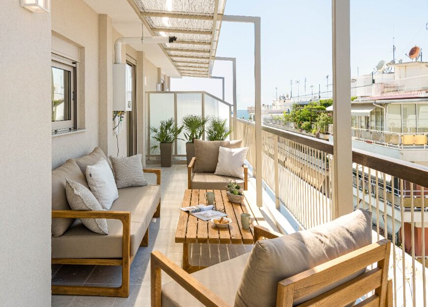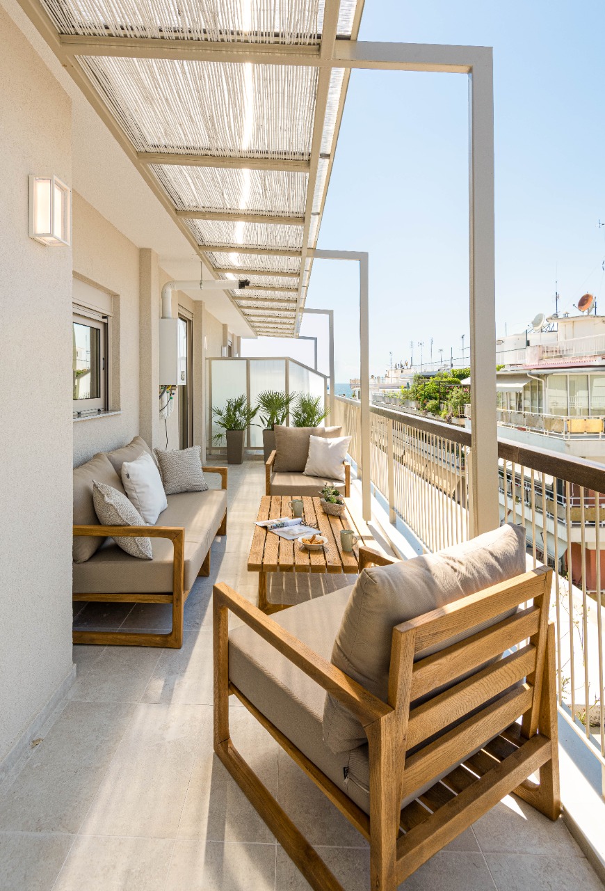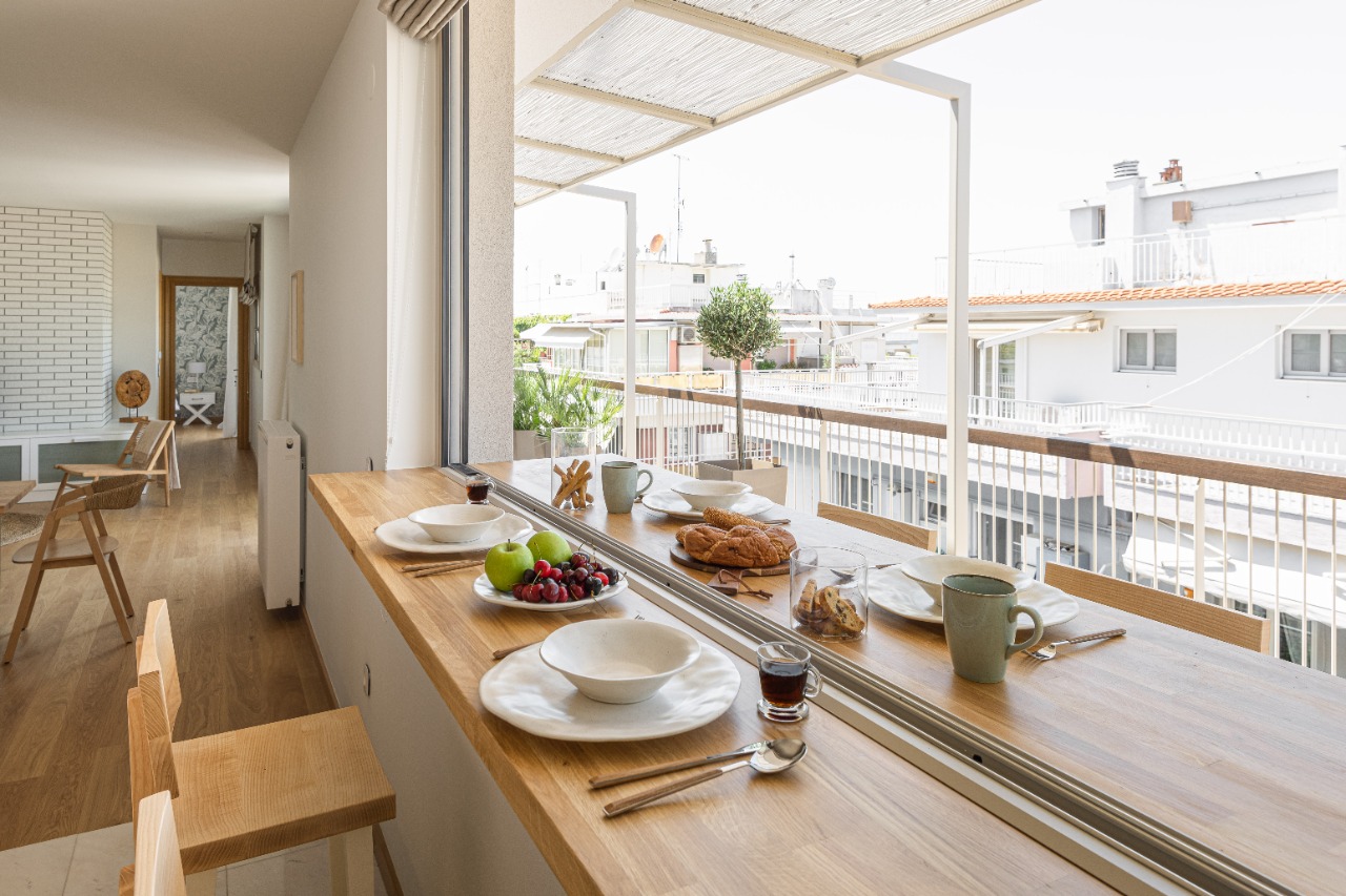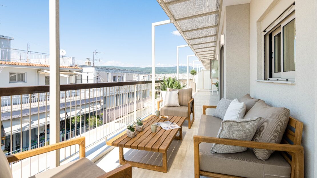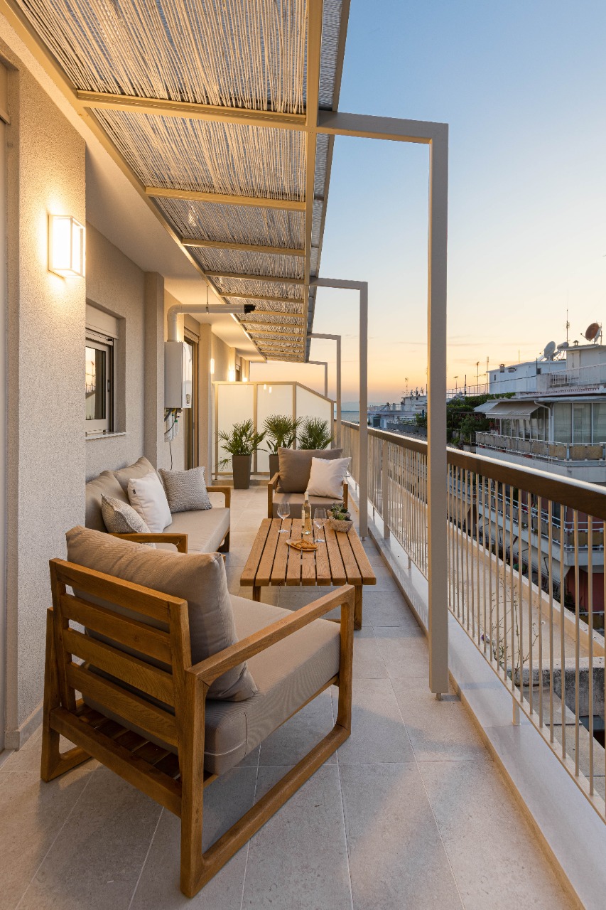 Το 82 τ.μ. διαμέρισμα βρίσκεται στον 7ο όροφο μιας πολυκατοικίας, στο κέντρο της Θεσσαλονίκης σε εξαιρετικό και κομβικό σημείο. Το 2022, ανακαινίζεται πλήρως μαζί με τα άλλα τρία διαμερίσματα του ίδιου ορόφου. Ανακατασκευάζονται στο σύνολό τους και οι κοινόχρηστοι χώροι του ορόφου, εγκατασταίνονται επίσης καινούριοι κεντρικοί σωλήνες ύδρευσης και αποχέτευσης και πραγματοποιήθηκε σωστή ηλεκτρολογική εγκατάσταση.