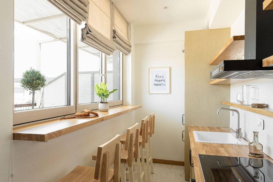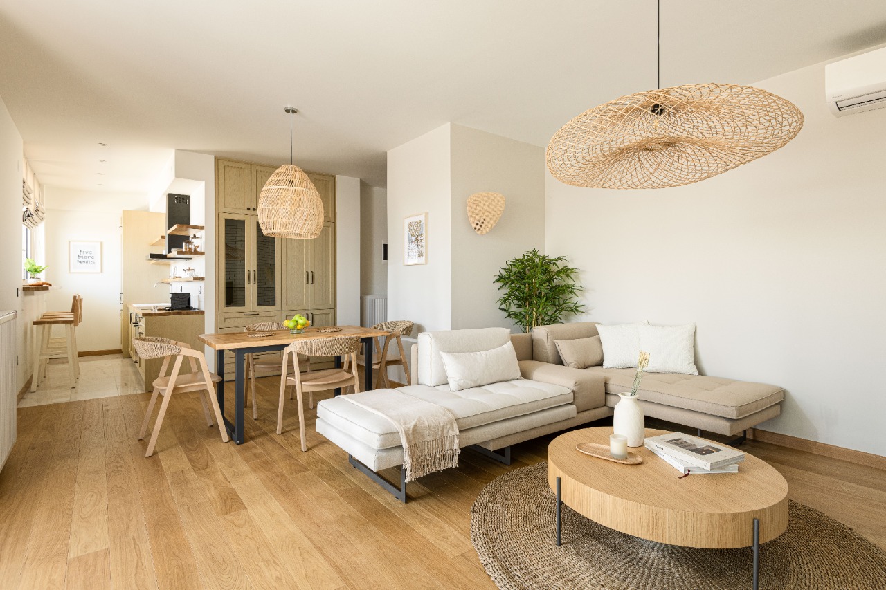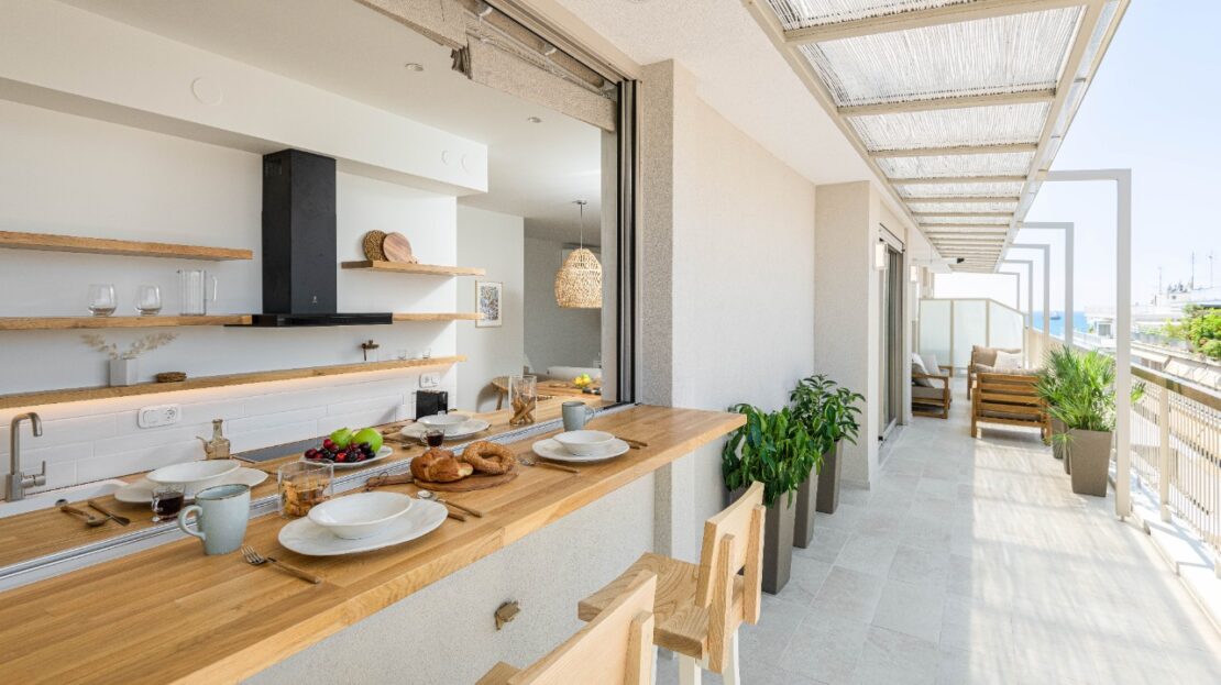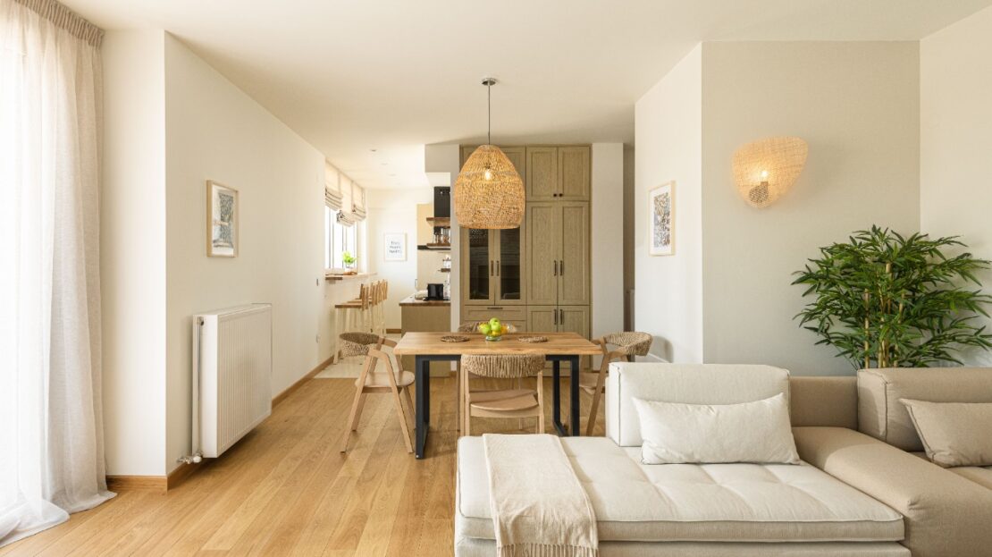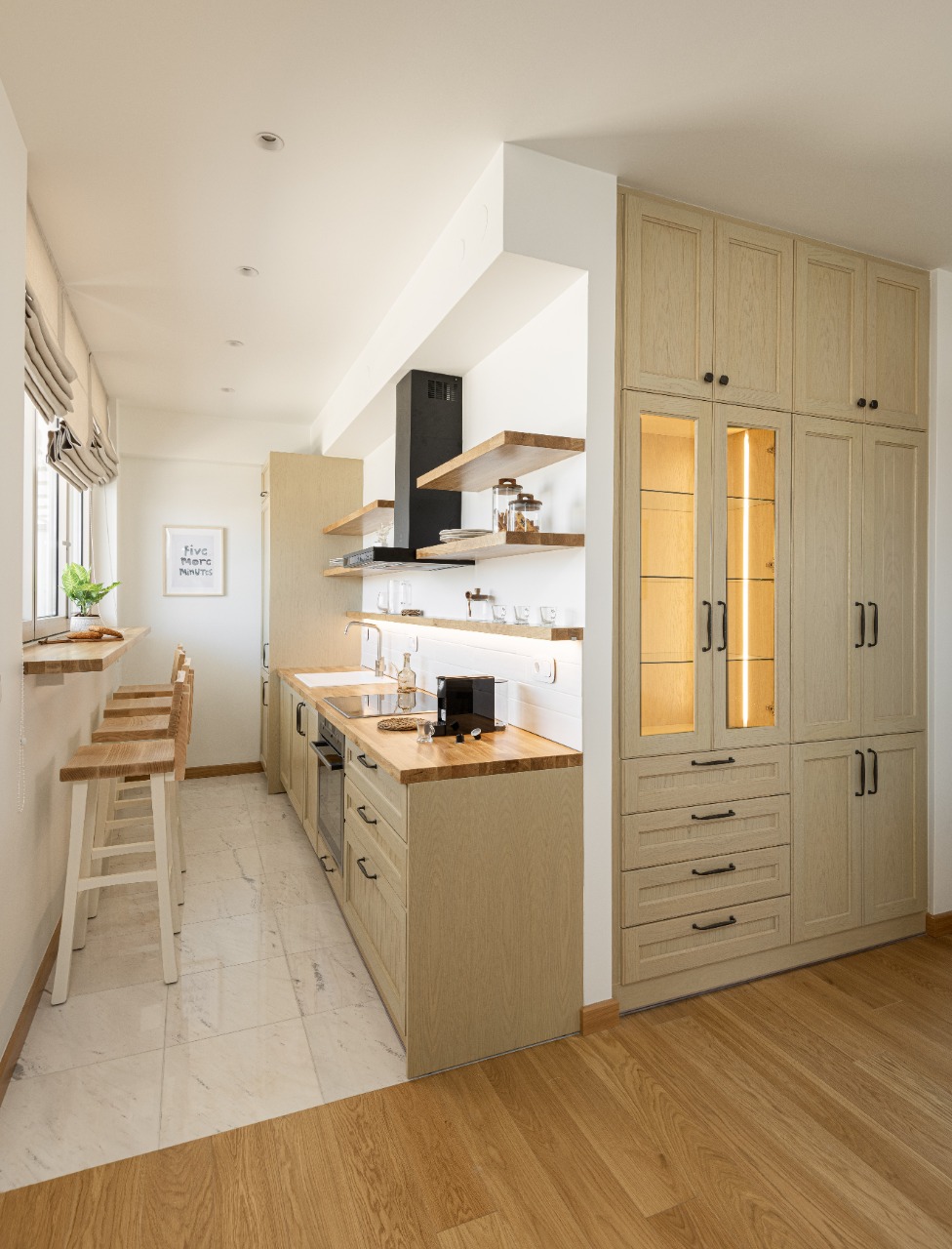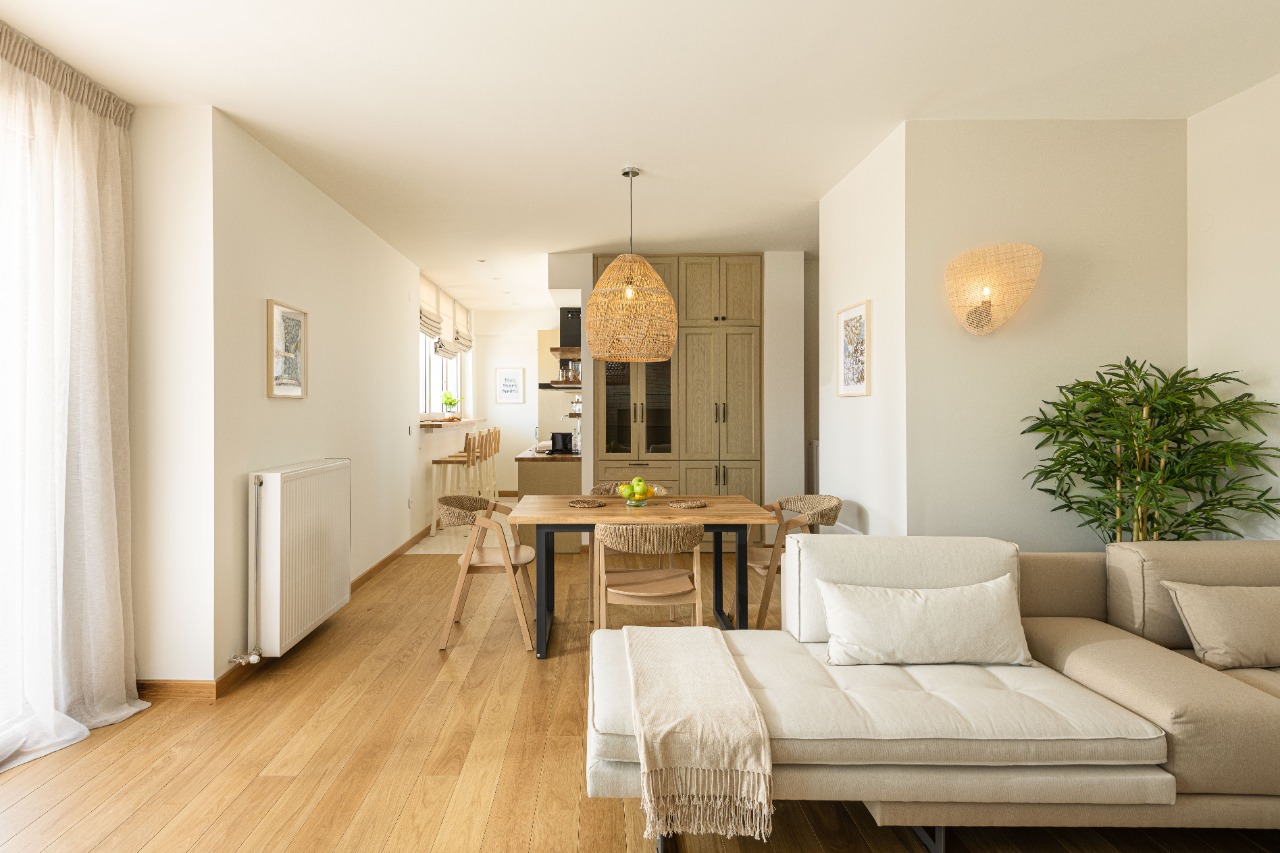 Το 82 τ.μ. διαμέρισμα βρίσκεται στον 7ο όροφο μιας πολυκατοικίας, στο κέντρο της Θεσσαλονίκης σε εξαιρετικό και κομβικό σημείο. Το 2022, ανακαινίζεται πλήρως μαζί με τα άλλα τρία διαμερίσματα του ίδιου ορόφου. Ανακατασκευάζονται στο σύνολό τους και οι κοινόχρηστοι χώροι του ορόφου, εγκατασταίνονται επίσης καινούριοι κεντρικοί σωλήνες ύδρευσης και αποχέτευσης και πραγματοποιήθηκε σωστή ηλεκτρολογική εγκατάσταση.