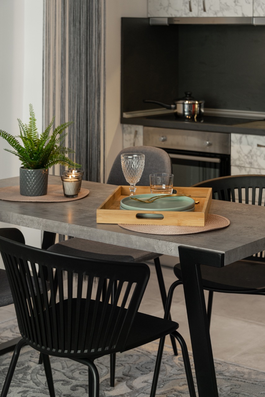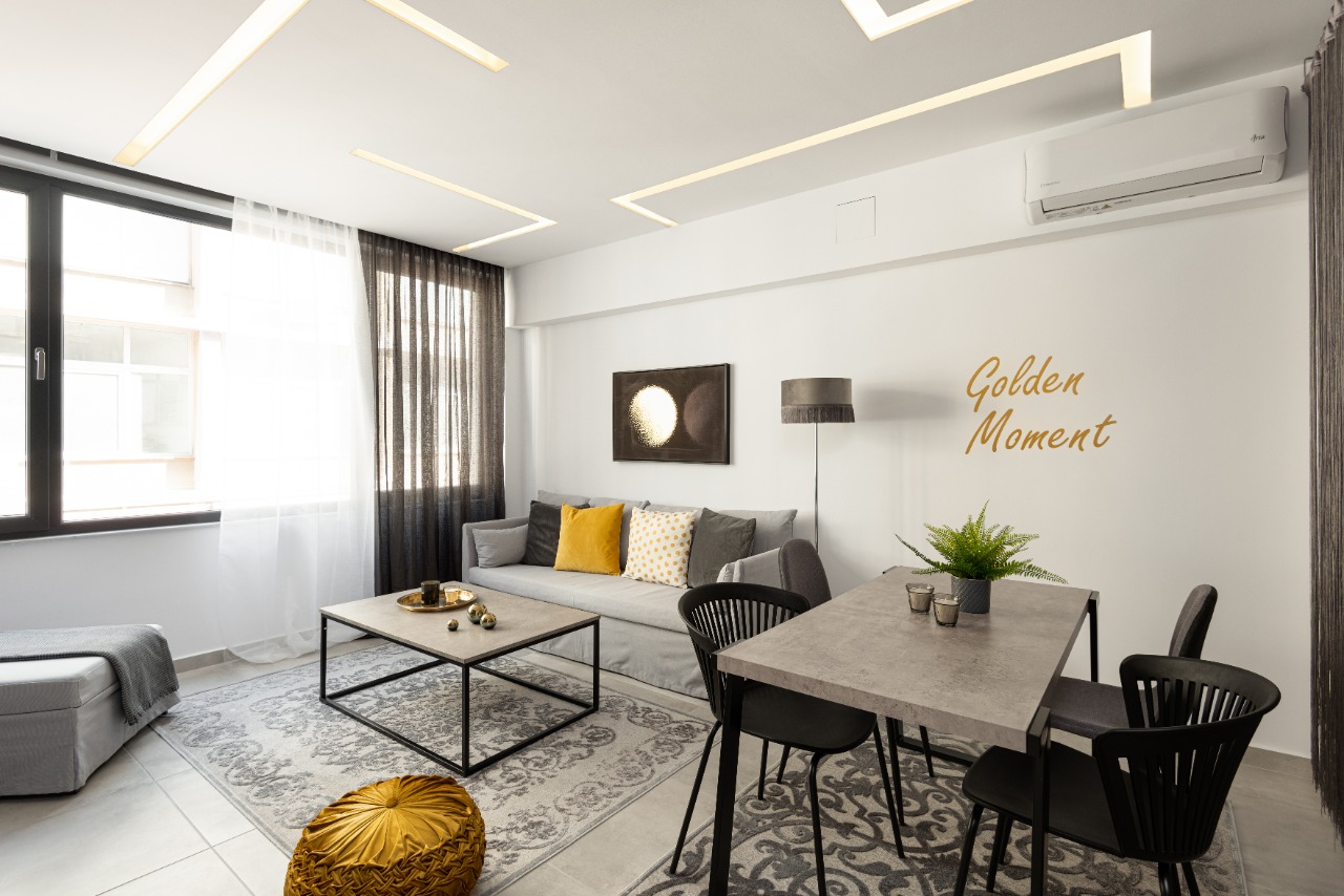 Το 60 τ.μ. ανακαινισμένο πολυτελές διαμέρισμα, 2ου ορόφου, βρίσκεται στο κέντρο της Θεσσαλονίκης σε εξαιρετικό και κομβικό σημείο. Αποτελείται από σαλοκουζίνα, υπνοδωμάτιο, μπάνιο. Είναι πλήρως επιπλωμένο και εξοπλισμένο και έχει κλιματιστικά σε κάθε χώρο. Τα παράθυρα έχουν ενεργειακά διπλά τζάμια.
