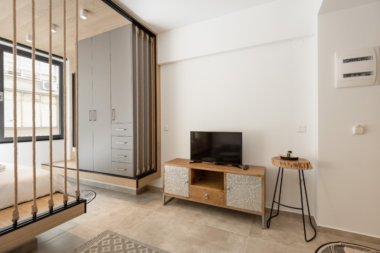 Το 35 τ.μ. ανακαινισμένο πολυτελές studio, 3ου ορόφου, βρίσκεται στο κέντρο της Θεσσαλονίκης σε εξαιρετικό και κομβικό σημείο. Αποτελείται από σαλοκουζίνα και μπάνιο. Είναι πλήρως επιπλωμένο και εξοπλισμένο και έχει κλιματιστικά σε κάθε χώρο. Τα παράθυρα έχουν ενεργειακά διπλά τζάμια.